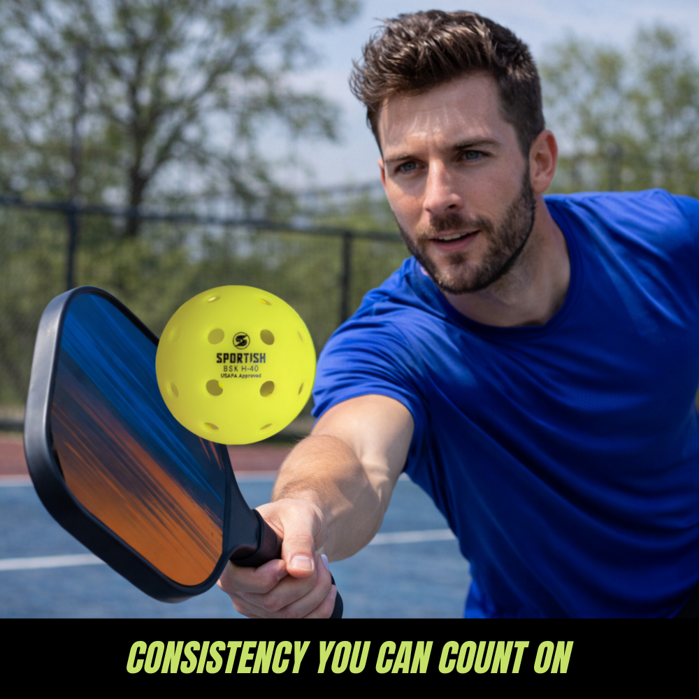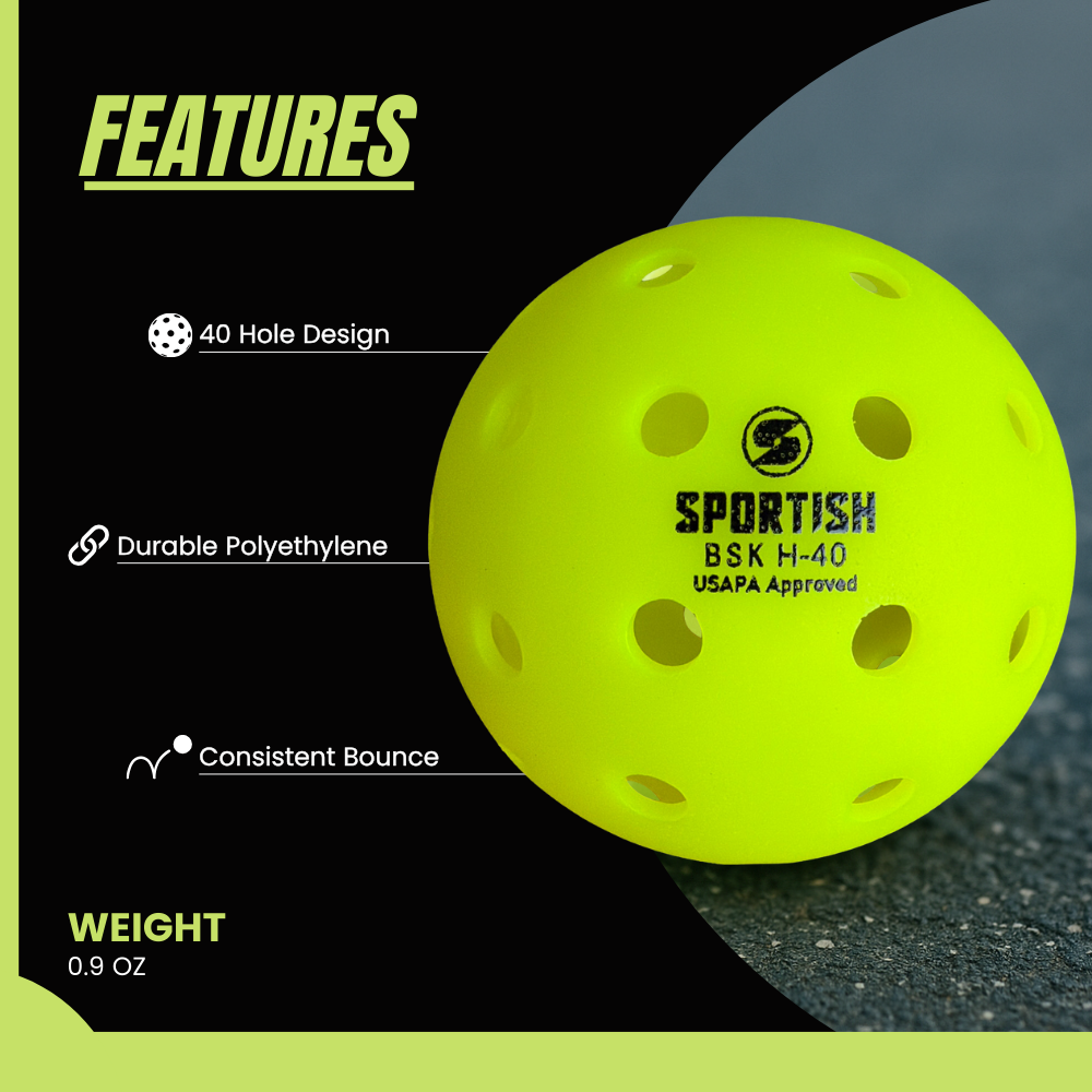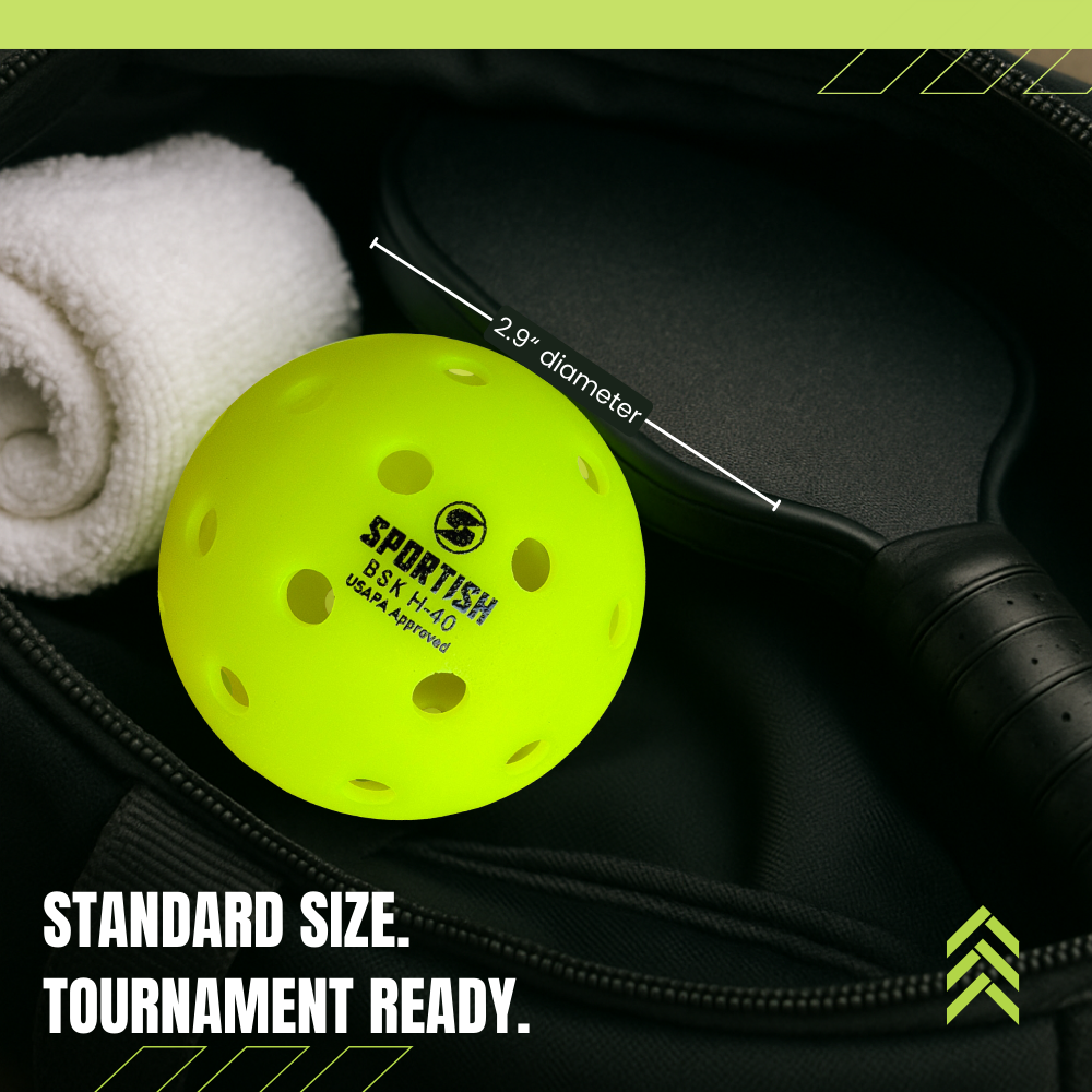 Premium 40-hole pickleball designed for outdoor play, delivering stable flight and consistent bounce.